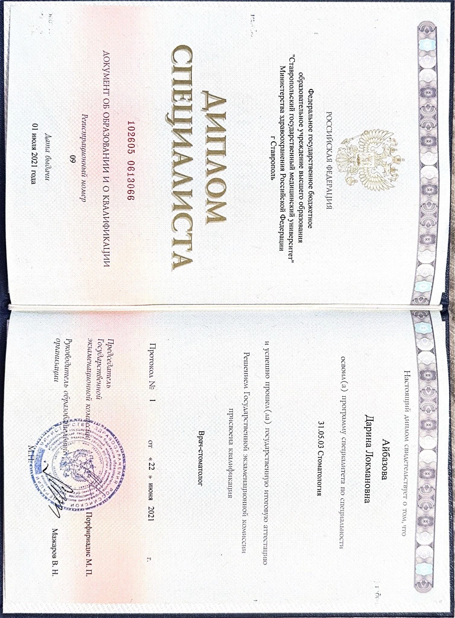 Айбазова Дарина Локмановна